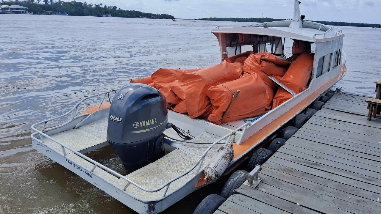 Barco de apoio marítimo para carga geral, com 12m, capacidade, 3 tripulantes e 7 passageiros, motor de 200HP, embarcação com boa estabilidade, proporciona excelente desempenho no reboque de barreiras de contenção.